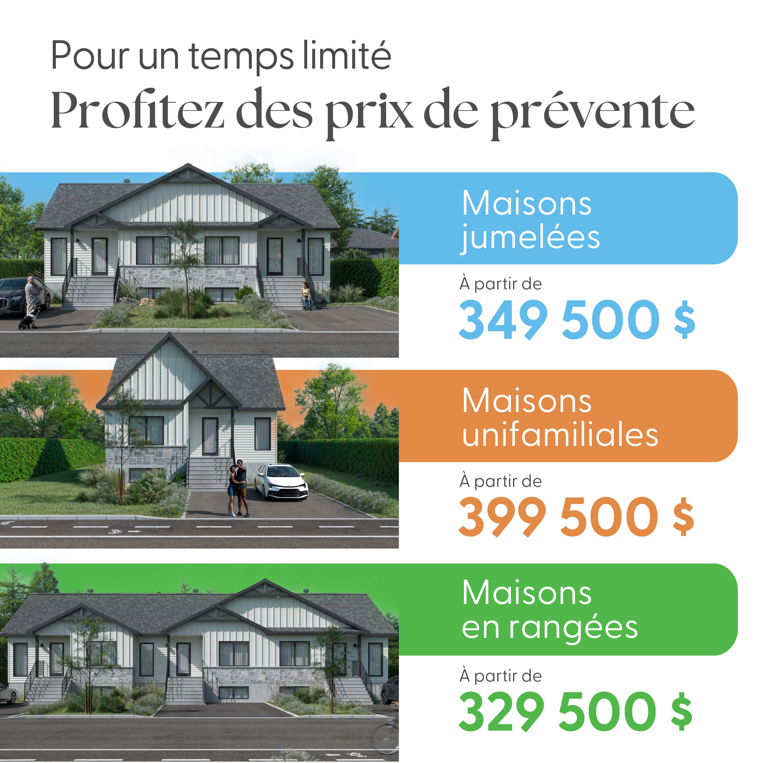 Devenez propriétaire d’une maison unifamiliale, d’un jumelé ou d’une maison en rangée, dans un environnement paisible et accueillant, tout en respectant votre budget.